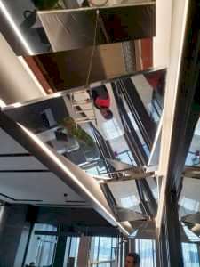 Kusursuz ve yüksek optik yansımaya sahip yansıtıcı ayna filmlerinin, hafif ve güçlü bir aluminyum çerçeve üzerine, özel bir teknikle gerilmesi sayesinde üretilen; Ayna Gergi Tavan hafif yapısıyla tavana kolayca asılabilir ve tavana çok az ağırlık yükler. Aynı zamanda maksimum yansıma sağlar. PVC ayna gergi tavan ürünlerinde genişlik ve uzunluk uygulama yapılacak yere göre değişiklik göstermektedir.